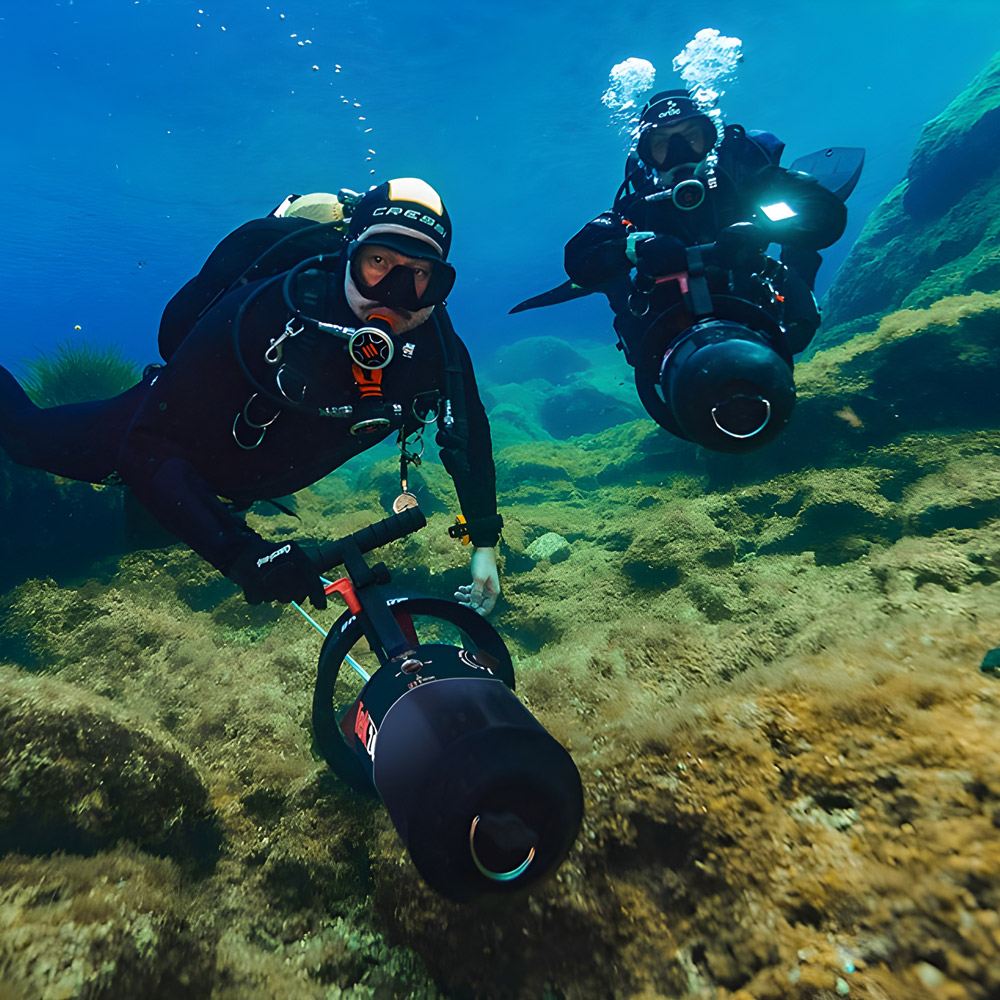 Der Unterwasserscooter bleibt stabil in jeder Tiefe und lässt sich präzise steuern, selbst mit kompletter technischer Ausrüstung. - Kompakte Bauweise