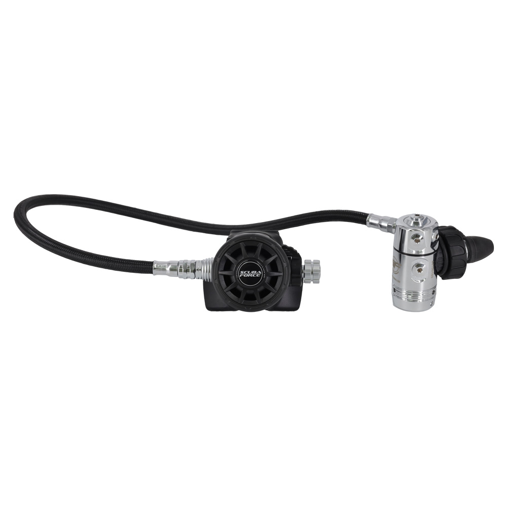 Kompakte erste Stufe mit stabiler Luftversorgung für Sporttauchen. - Zwei Black Devil zweite Stufen