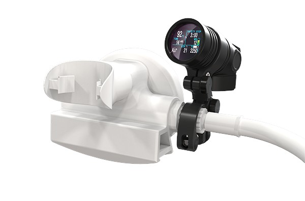 Technische Spezifikationen: Bildschirmauflösung: 320×240 | Displaytyp: QVGA | Batterietyp: Interne wiederaufladbare Li-Ion-Batterie | Batteriekapazität (ca.): 1,3 Wh | Batterielebensdauer: 18 Stunden (mittlere Helligkeit) | Batteriewechsel: 5 Jahre (oder 500 Ladezyklen) | Anzahl der Gase: 5 OC / 5 CC | Tauchprotokoll: 1.000 Stunden | Wassertiefe: 300 m / 985 ft | OC-Montage passt auf 17-21 mm Regler-Schlauch.
