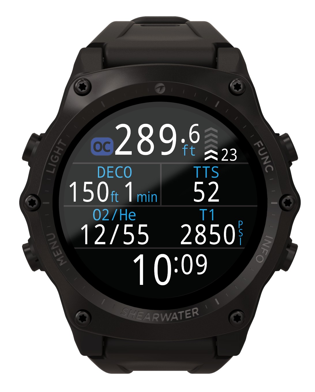 Funktionen: Dekompressioncomputer | Luftintegriert | Bis zu 4 Sender | 3-Achsen, neigungskompensierter digitaler Kompass | Bluetooth®-Drahtlos-Technologie | Umschaltbare akustische & Vibrationsalarmen | Upgrade-fähige Firmware | 316 Edelstahl-Lünette und -Tasten | 22mm Armbandgröße (Verlängerung inklusive) | Ballistisches Nylon-Polymer-Gehäuse